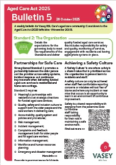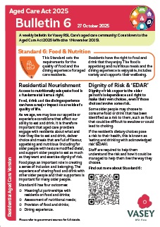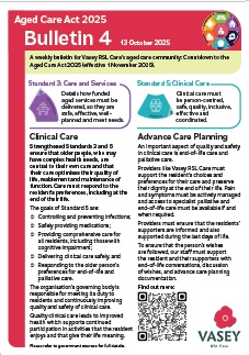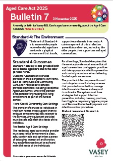 Vasey RSL Care has provided a number of brief bulletins covering some of the major topics and changes that are important for aged care residents and their loved ones and home care clients to know about. We will continue to add to these bulletins over the coming weeks.