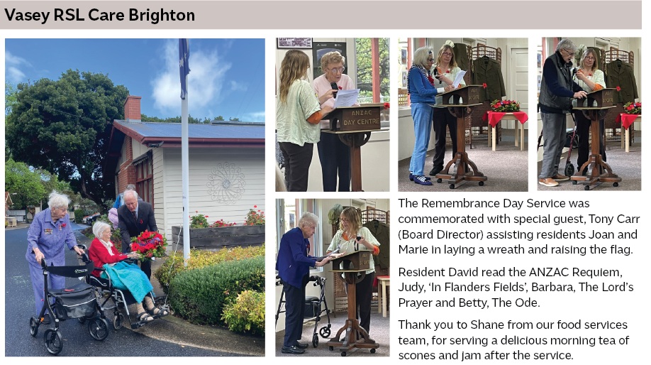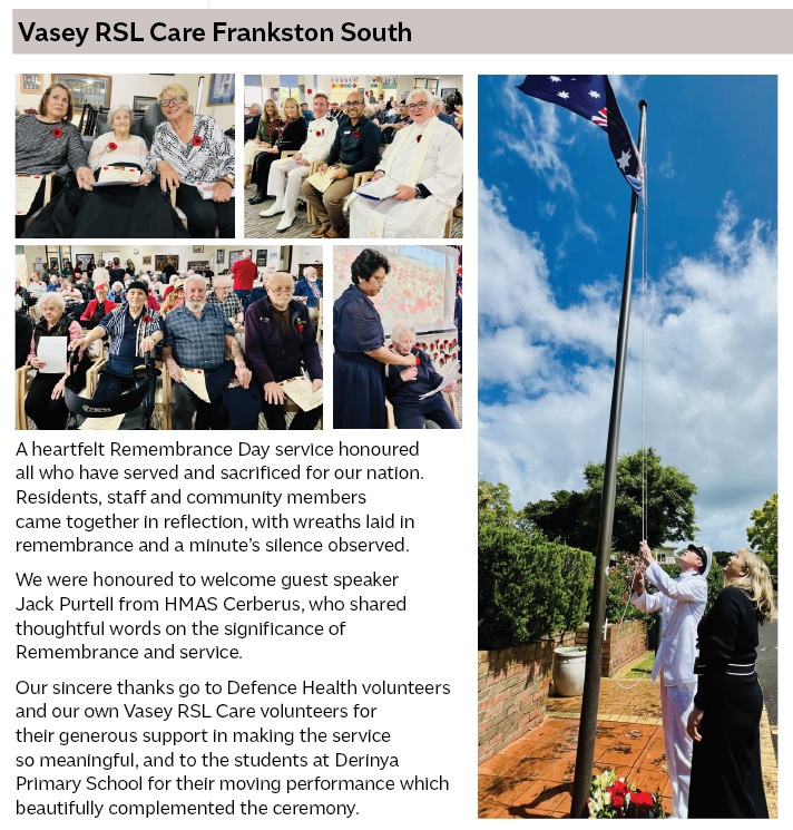 We are privileged to live in a nation that honours its heritage while welcoming people from all parts of the world — a country bound by shared values and pride in being Australian. These are the values we uphold at Vasey RSL Care as we support veterans and their families every day.