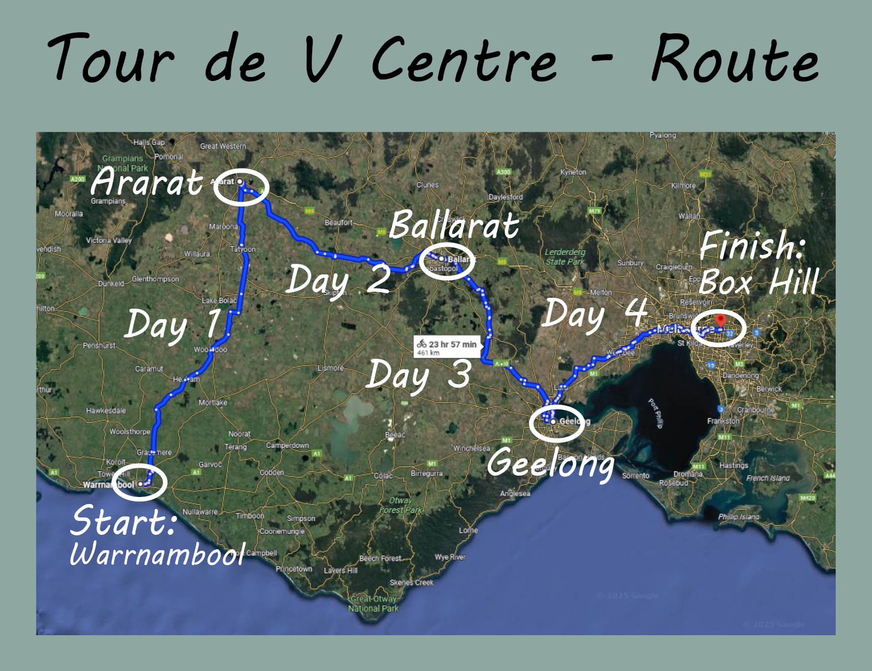 Starting at Warrnambool and taking in Ararat, Ballarat and Geelong before arriving at Box Hill, the Tour de V Centre will promote awareness of veteran homelessness and its causes, and highlight the innovative V Centre Veteran Empowerment Program which is already changing lives for the better.